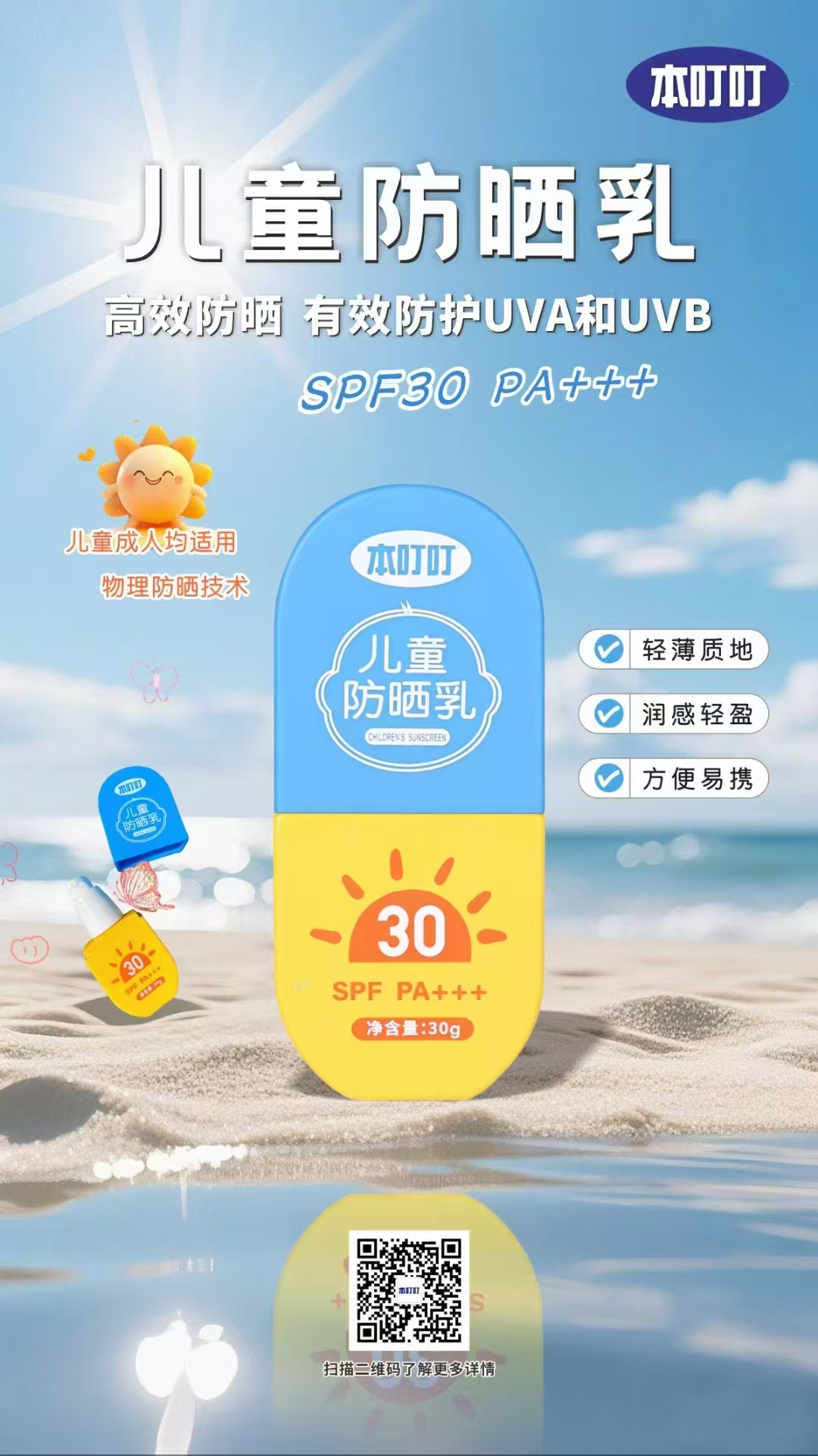 本叮叮儿童防晒乳,让宝宝放心拥抱阳光,快乐玩耍!
