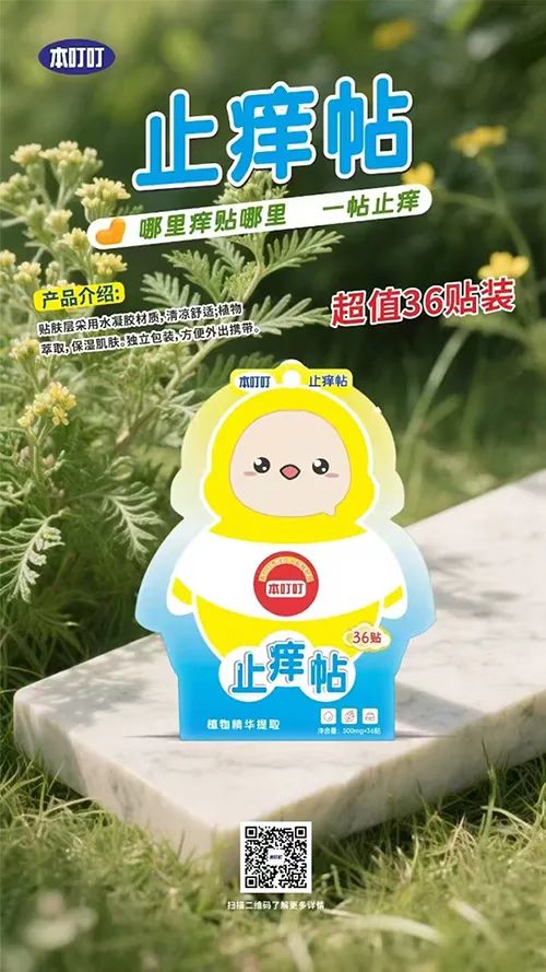选择本叮叮止痒帖,开启清爽舒适的全新体验,别再让抓痕留在你的皮肤上!