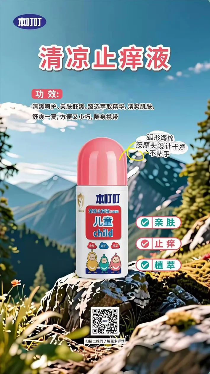 孩子的胳膊抓出红血痕、露营被毒蚊子"盖章"、空调房干痒到睡不着...什么能让痒感处舒适?本叮叮清凉止痒液!