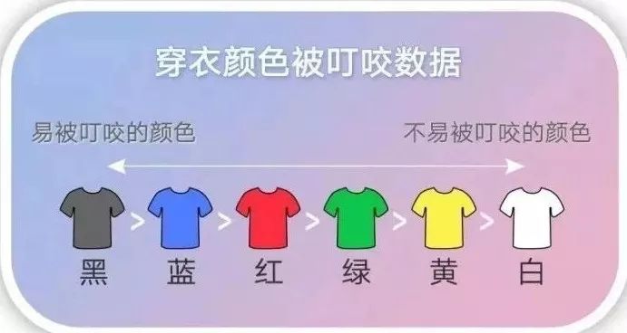 除了先天因素之外,还有后天因素。专家实验证明,蚊子具有趋光性,它的感官系统能感受到光波,它们更喜欢停留在深色的衣服上,因此出门野外,*好是穿白色的衣服,这样也能降低被叮咬的机率。