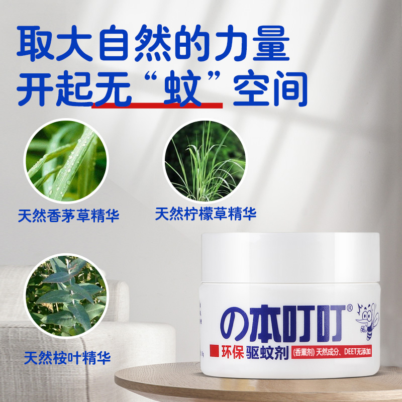 本品与市面上大多数的驱蚊产品不一样,不含有烈性杀虫药DEET,其无毒配方,不会对皮肤产生刺激。另外,其特有的精油成分——孟二醇、桉叶提取物和香茅提取物都是天然的驱蚊虫成分。“の本叮叮精油防护”里面都蕴含着的都是大自然的力量,绿色环保,安全无害,可以完全放心使用。