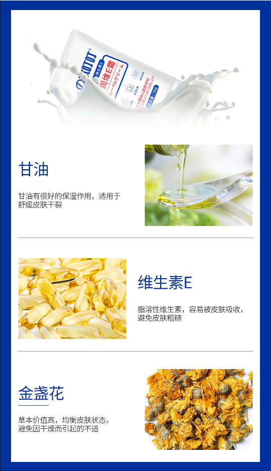 做好饮食后,保湿就要提上日程了。保湿**绵羊油,据悉,绵羊油的使用早在上个世纪就已经开始了!绵羊油的保湿效果已经过多年验证,具有长效保湿的作用。搭配金盏花(富含维A、维C)的舒缓、抗菌功效,结合维生素E的营养补充,让保湿效果更加长效、健康。
