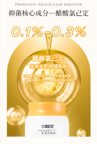 这款抑菌膏采用以金盏花、金银花、艾草、苦参为主的绿色抑菌成分,使用微量醋酸氯己定(0.01-0.35%)为辅的抑菌成分,对金黄色葡萄球菌、大肠杆菌和白色念珠菌有抑制作用。搭配凡士林的补水保湿成分,可以长效抑菌。