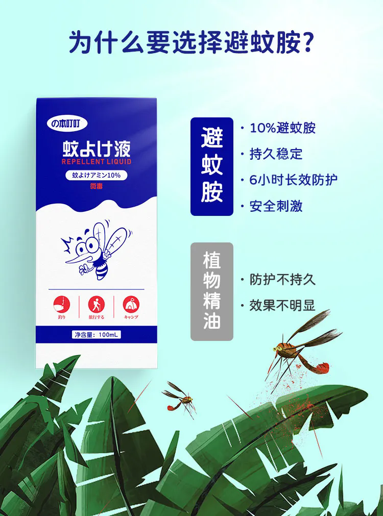 这些成分在驱蚊液中各自扮演着不同的角色: