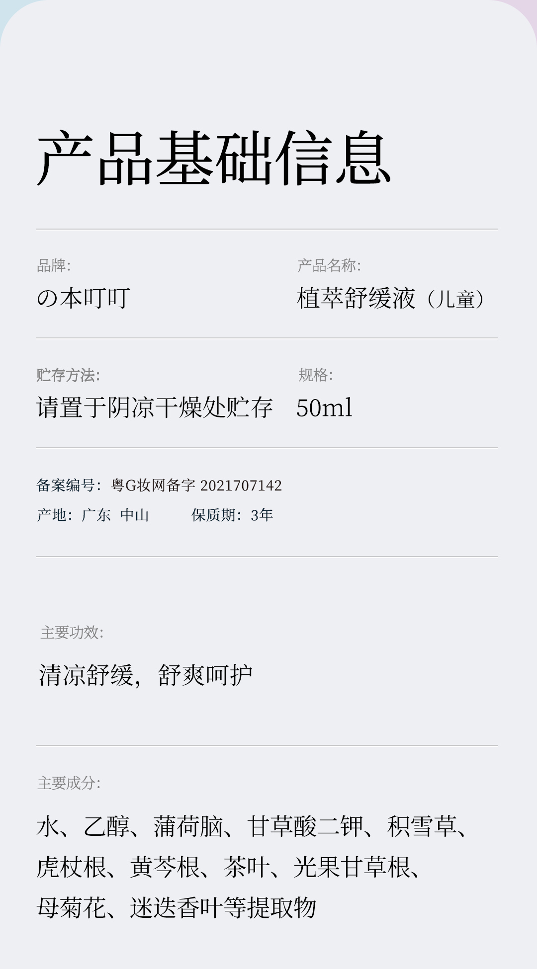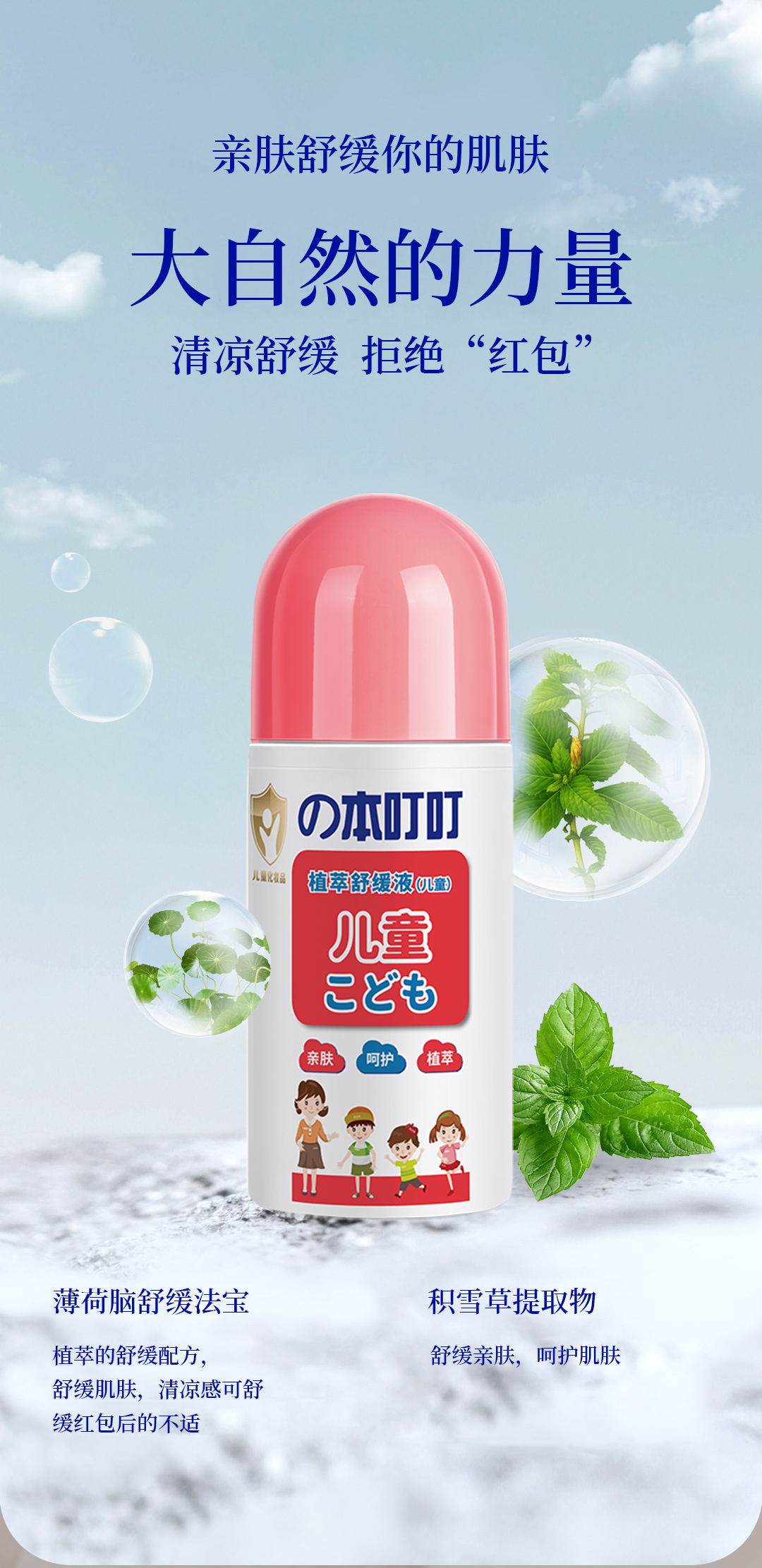 天然植物萃取而成,含有积雪草、薄荷脑、母菊、甘草、虎杖、黄芩提取物,针对蚊虫叮咬造成的各种瘙痒具有1分钟止痒3分钟消肿的效果,具有国家药监局儿童化妆品权威备案的小金盾标识,强力安全保障,专为3个月至6周岁的小孩贴心设计,肤感温和亲肤,小巧便携安心止痒