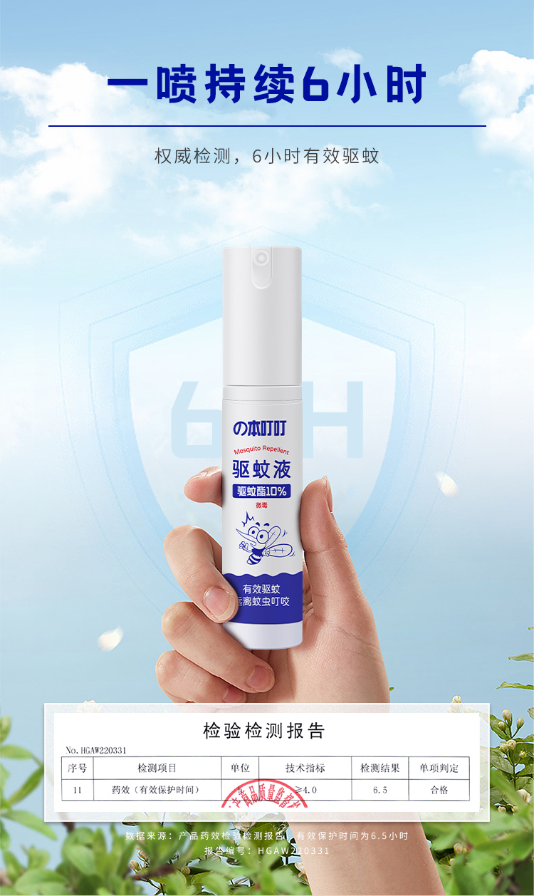 散发自然清香,含有10%驱蚊酯强效驱蚊,直接喷散皮肤或衣物即可长久呵护6小时,贴心采用真空瓶头设计防止漏液洒出,安心纵享默默无蚊的防护体验
