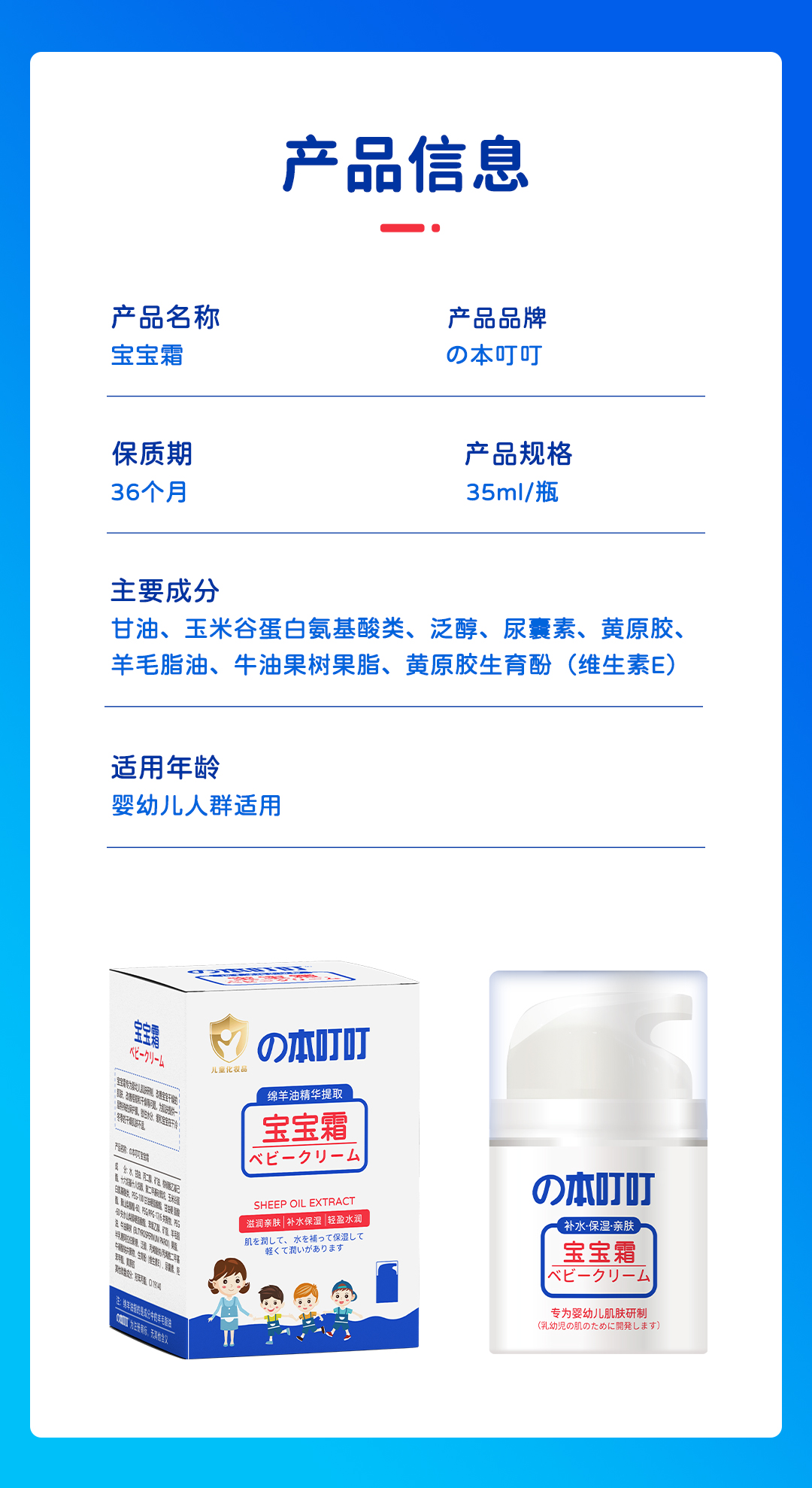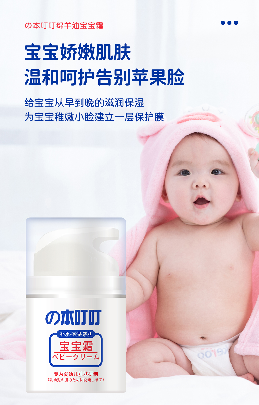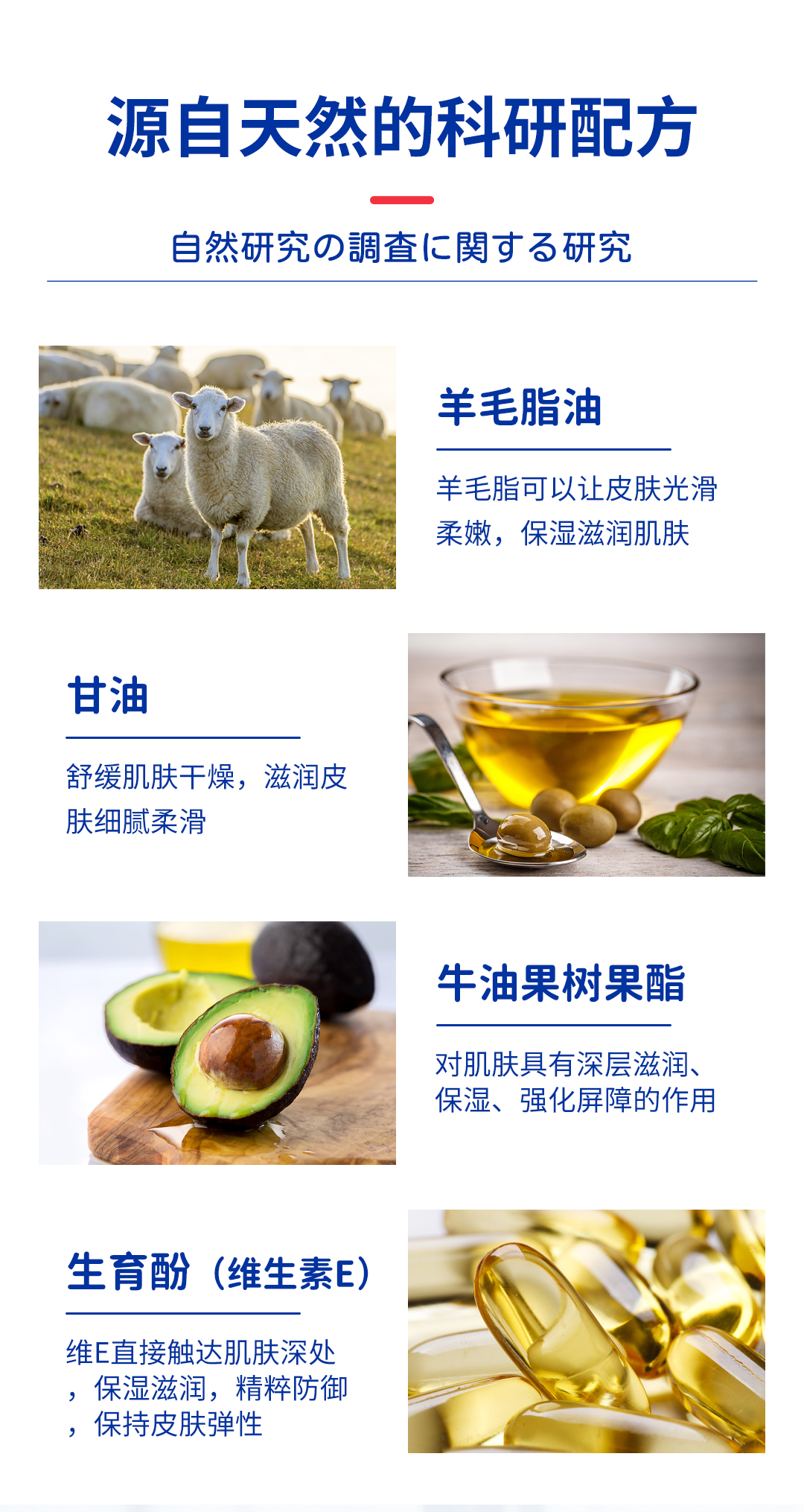 富含羊毛脂油、牛油果树果脂油、甘油、维生素E的有益成分,专为婴幼儿肌肤研制,改善宝宝干燥肌肤,远离皮肤粗糙难题, 提供皮肤强力保护膜,锁住水份缓解宝宝干、红、痒的皮肤不适